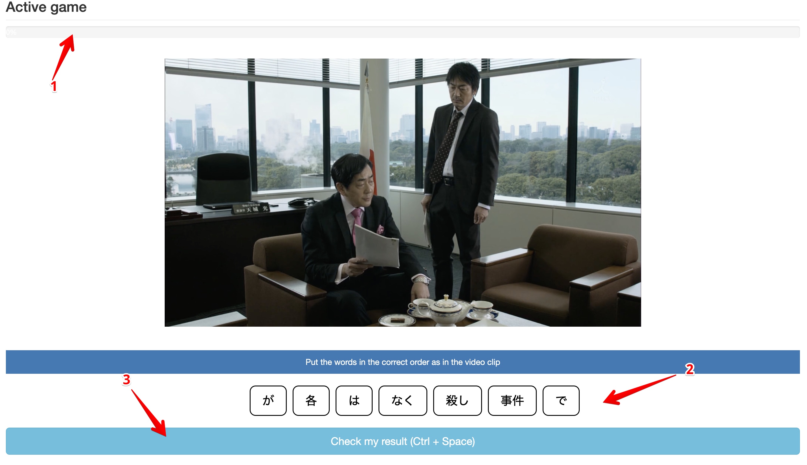 1. ビデオ クリップを視聴します。 単語を順番にドラッグ アンド ドロップします [矢印#2を参照] 特定のパッセージからフレーズを取得するまで。